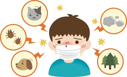 アレルギー疾患には、食物アレルギー、アトピー性皮膚炎、アレルギー性鼻炎(花粉症を含む)、アレルギー性結膜炎、気管支喘息(ぜんそく)、薬剤・昆虫アレルギーなど、、、症状・経過とも多様な疾患が含まれます。