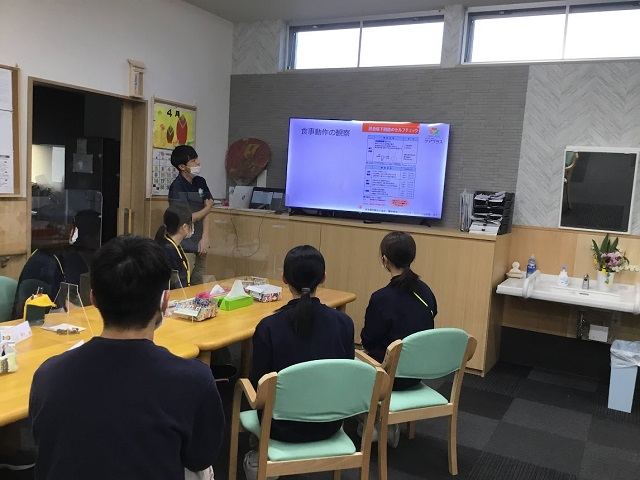 新居浜でも、窒息や誤嚥性肺炎といった食事に潜むリスク、ご利用者様に安心・安全に食事をとっていただくために必要なことを学びました。