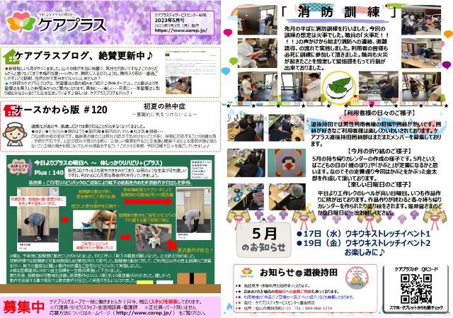 さて、ケアプラス道後持田新聞5月号が完成いたしました。