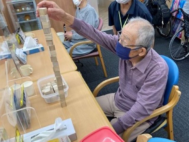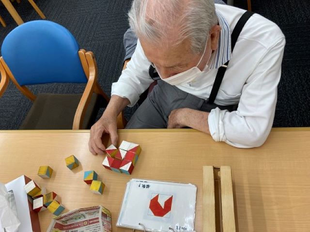 他にも手指レクリエーションとしてブロック積みや立体パズルをされて余暇時間を過ごされています。