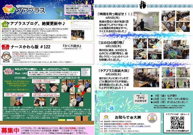 梅雨に負けず元気に過ごしていたこうと毎月のごとくイベントを開催いたしましたのでご報告いたします。