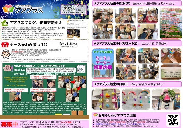 それではケアプラス垣生新聞7月号の紹介をします!