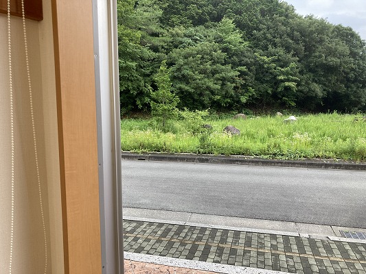 ケアプラス宇和島の周りは自然に恵まれており、窓を開けると広い敷地の向こうには山が見えます。季節折々の木々も見え緑豊かな所です。