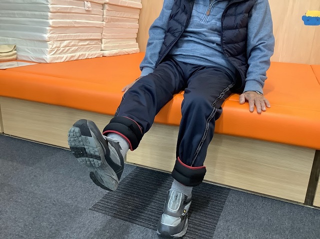 下肢筋力アップのためにご自宅リハビリパックとして重錘と自主トレチェック表をお渡ししました。
