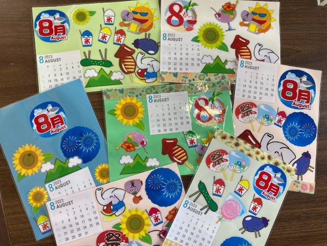 ミニカレンダーは8月用なのでヒマワリやナス、キュウリなど真夏を思わせる絵柄になっております。皆様、素敵に仕上げられておりますね。