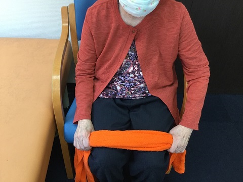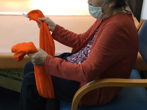 そしては、訓練で使っていただくのは、ご自宅リハビリパックとしても用意させていただいている「タオル」です。
