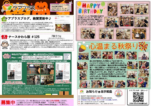 お誕生日の皆様と、秋祭りの様子を載せさせていただいています。