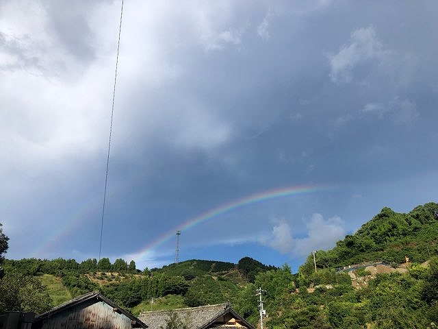 先日、送迎の際ご利用者様をお送りした後、ふと空を見てみると綺麗な虹が掛かっておりました。