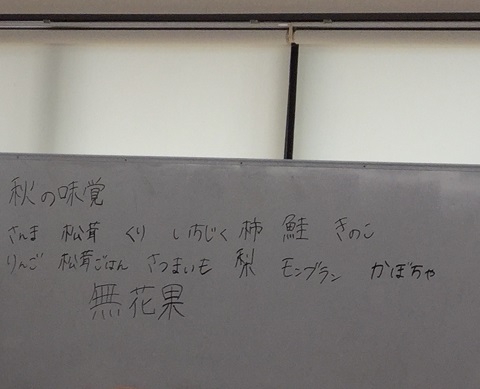 お次はホワイトボードのレクリエーションで秋の味覚をお題にした連想ゲームです。