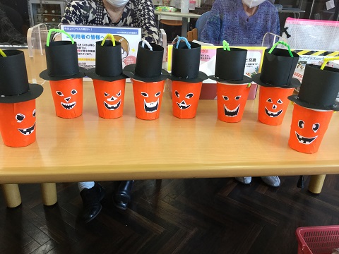 ハロウィンといえば、かぼちゃを切り抜きランタンにした「ジャックオーランタン」ですね。表情のバリエーションを複数作り、お好きな顔が出来上がるよう行って頂きました。