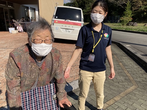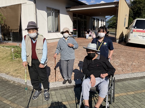 ケアプラス宇和島でも秋の雰囲気を楽しもうと多くもご利用者様がお散歩に出かけ、秋風を感じたり、周囲の山々の紅葉を楽しまれたりして過ごされています。