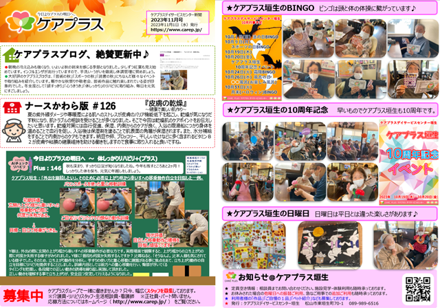 今年も残すところあと2ヶ月ですが、ケアプラスでしっかりと運動を行い、良い年越しを目指していきましょう!