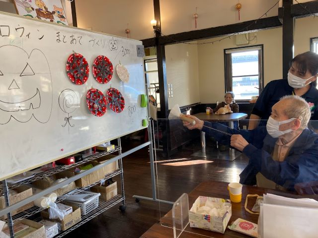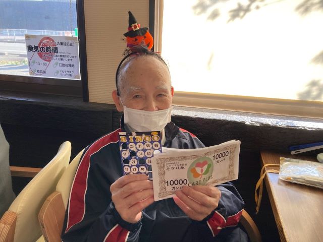 10月31日は『ハロウィンビンゴ大会』で、スタッフが仮装して盛り上げました。利用者の皆様も、ちょっとだけ仮装してハイポーズ!