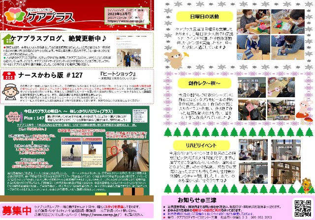 さて、ケアプラス三津2023年12月号の新聞が出来上がりました!