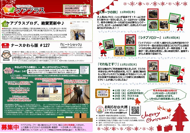 振替利用、追加利用は随時承っておりますので、2023年の締めくくりも明るく元気に過ごせる様、職員一同お待ちしております。