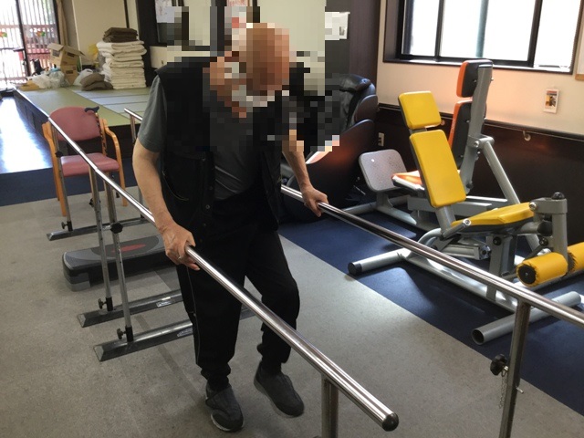また、平行棒内で歩行の確認とバランス訓練を行いました。