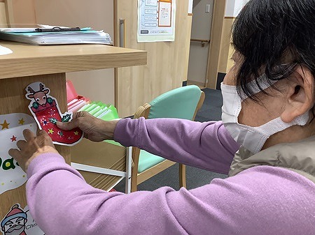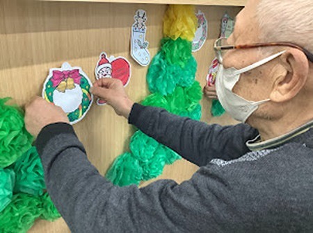 その周りにクリスマスにちなんだ飾りつけを利用者様と行いました。