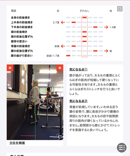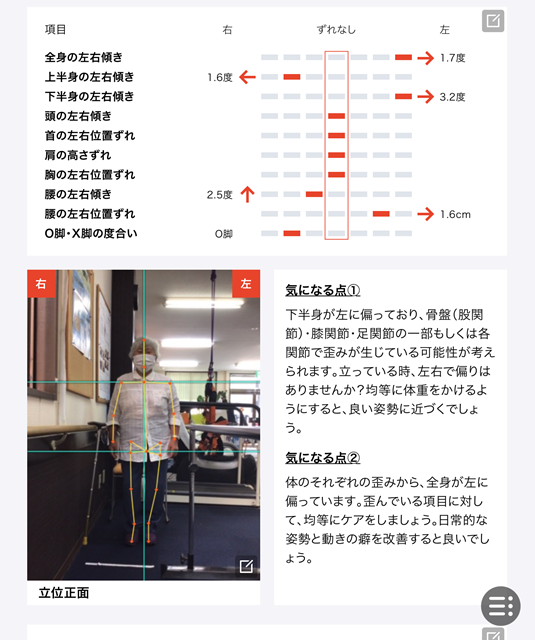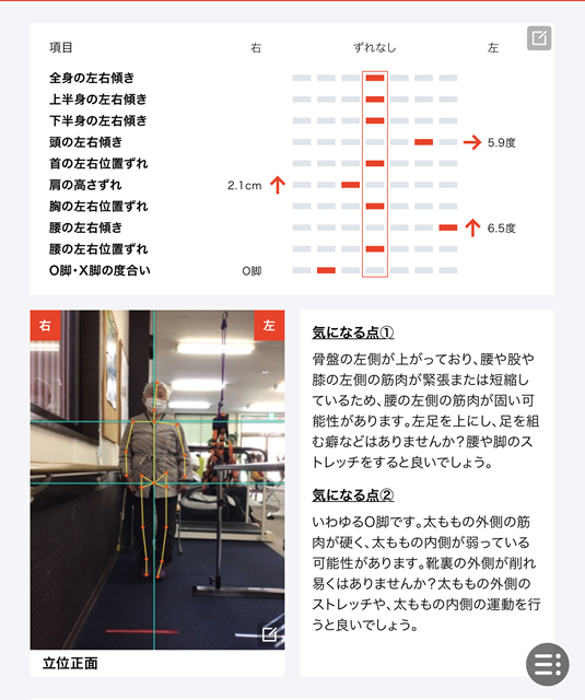 歩行の速度やバランスが安定し、歩行時の足の引きずりも少なくなっております。立位時も右足に体重が乗せる事が出来る様になりAIチェックリハビリの点数が向上しております。