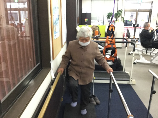 今回ご紹介するS様は週に1回のご利用の方です。以前は右股関節痛が強くありT字杖で歩行を行っておりました。その為歩行速度が遅く足を引きずる様にして歩いておられました。