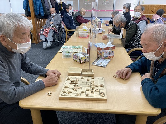 先ずは将棋に熱中されているところです。