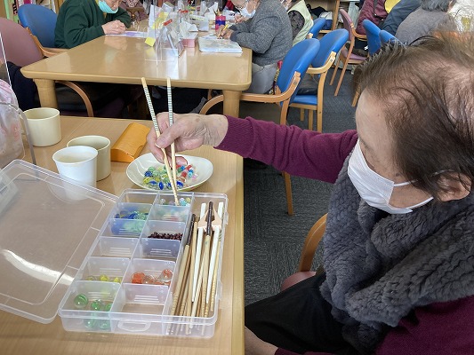 こちらの女性は小さな小豆を、お箸で掴まれているところです。