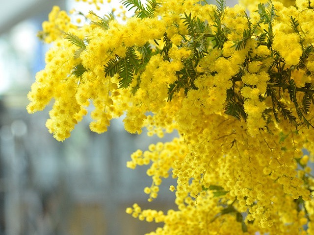 早春の青空に黄色い可憐な花が舞い、葉も銀葉で明るく美しく、春を感じて心ウキウキさせてくれる魅力的な花ですね。