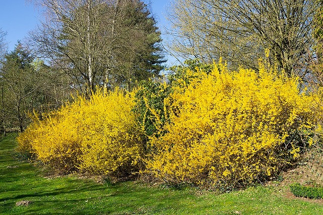 レンギョウは小さな黄色い花が枝に密生し、満開になると素晴らしい景色を楽しめます。