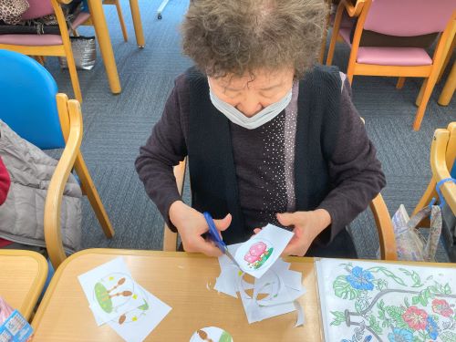 制作途中には「春が来た」や「春の小川」など春の歌を皆さんで口ずさんだり、お花見はいつ行こうかとご利用者様同士で相談したりなど、皆さんが春の訪れを楽しまれている様子を見ることが出来ました。