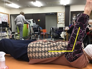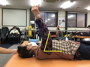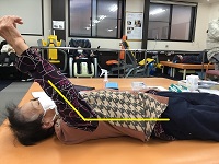 仰向けになって頂いた状態で、腕を挙げてもらいました。