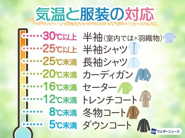 くもりの場合…長袖Tシャツ、長袖シャツ