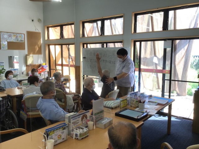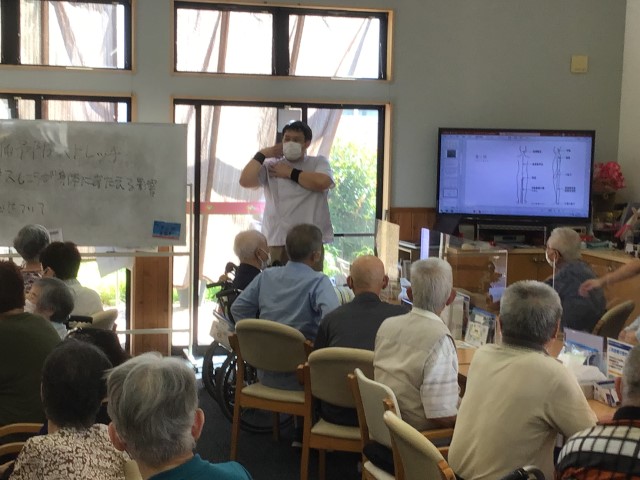 このようにケアプラスではリハビリ中はもちろんイベントなどでも知識や予防についての講義などもさせて頂いてます。