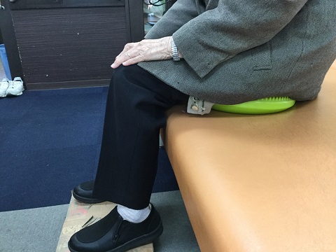次に、バランスディスクの上に座っていただき、姿勢が崩れない様に一定時間そのままの体勢を保っていただく訓練を行いました。