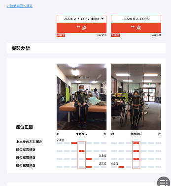 上記の訓練を実施したことで、座位姿勢の傾きが軽減し安定性が向上したため、食事時の誤嚥リスク軽減を図ることができました。また、体幹の筋力が向上したことで歩行時や移乗動作の改善も図ることができております。