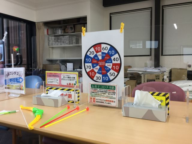 一週目は紙コップの的を、2週目は得点がある的を使用しました。