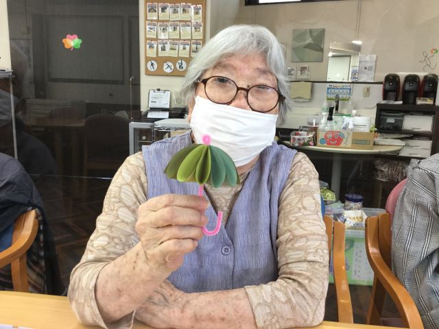 まずは創作レクリエーションです。今回は『てるてる坊主』と『傘』の二種類をご用意させて頂きました。