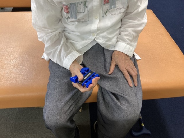 更なる握力向上、手指動作の向上に向けて次のステップとして今月からはフィンガーグリップに挑戦していただいております。