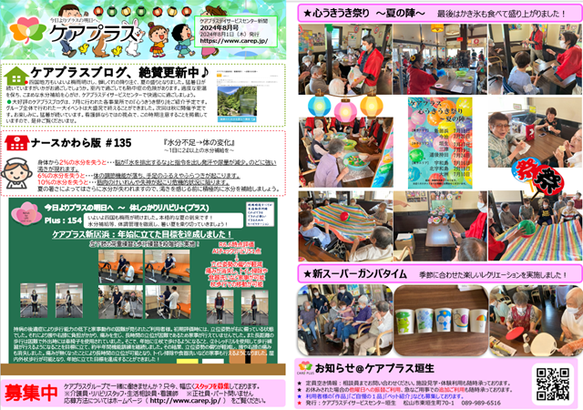 ケアプラス垣生新聞 24年 8月号が更新されました。