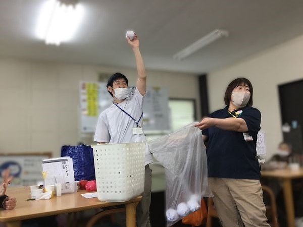安全考慮し、座って投げていただくようにお声掛けしつつ頑張って頂きました。