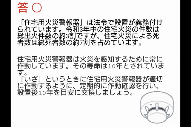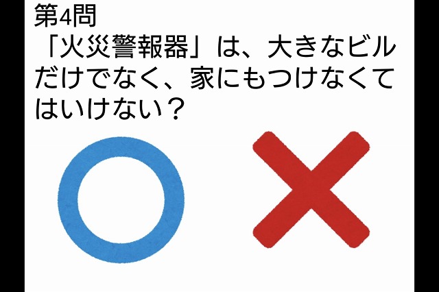 「火災報知器」は大きなビルだけでなく、家にもつけなくてはいけない。◯か✕か?
