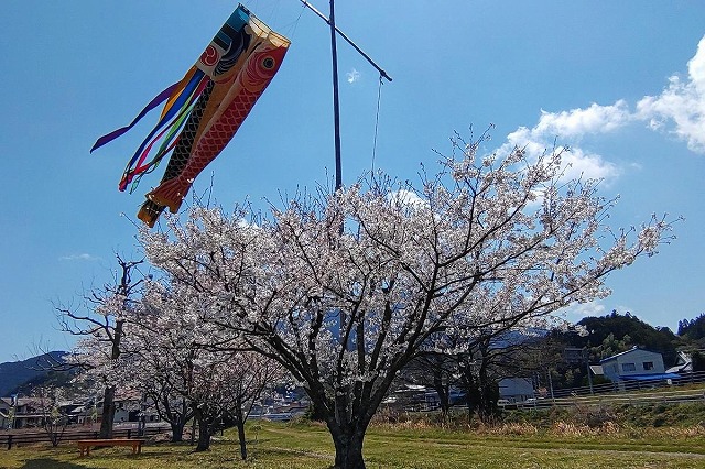 先日出かけた時に満開の桜と、風に揺られて気持ちよさそうに泳いでいる鯉のぼりを見ました。