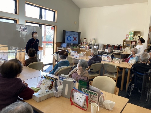 普段は消防署の方々が来られての避難訓練を行いますが、今回は◯✕クイズにて皆様に防災の知識を深めていただきました。