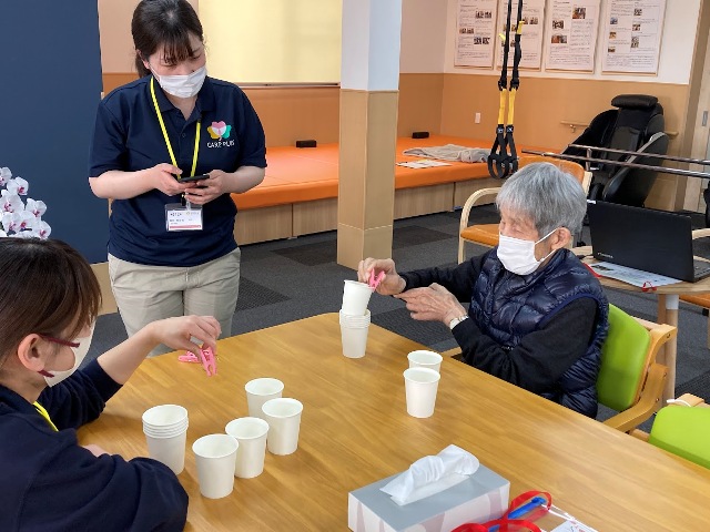機能訓練以外の時間もご利用者様が好きな活動を休憩を挟みながら実施し、1日通して活動量が増えていくように関わっていきました。