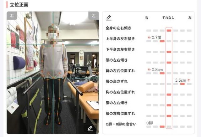 今回の姿勢評価はAIチェックリハビリを用いております。今後も、この姿勢評価を用いて、さらに良いリハビリが提供できるよう利用者様と情報共有を行い、経過を追っていきたいと思います。