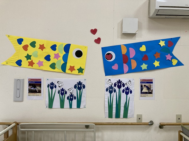 その翌週には、ご利用者様と一緒に鯉のぼりや菖蒲の飾りを作りました。