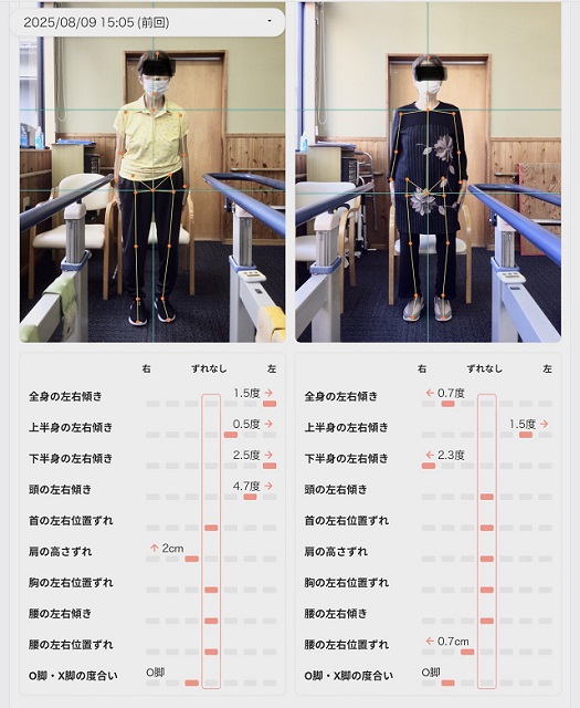 ケアプラスでは、定期的にAIチェックリハビリを実施して利用者様の姿勢を確認させていただいています。