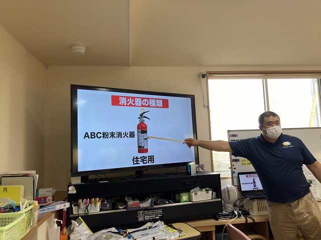 消火器の使用方法を皆さんと一緒に学び、消火器の場所を再確認。