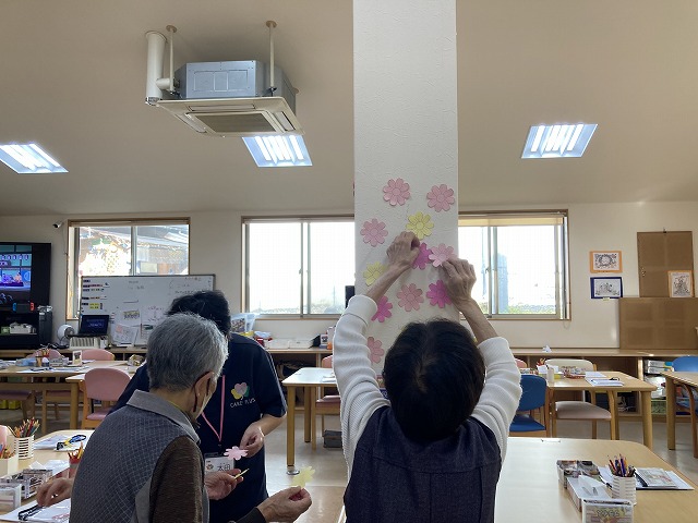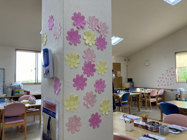 ケアプラス北宇和島のフロア内もコスモス色に変わりました。