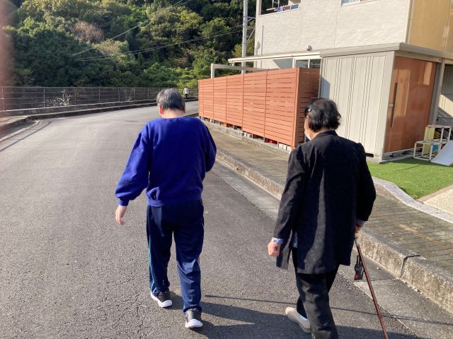 最近、朝晩は寒いですが、日中は暖かくお散歩に出かけられる方がたくさんいらっしゃいます。気分転換になるのでご利用者様同士で「外の空気が気持ちええなぁ」と談笑されています。