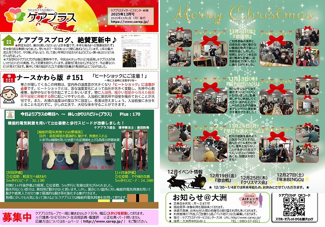 早いもので、もう師走となりました。一年がもう終わるのかと月日の流れの早さを実感しております。これから本格的な冬の到来を迎えますので、皆様お体ご自愛くださいませ。