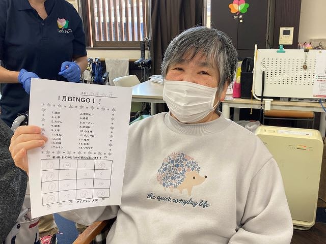 さて、ケアプラスでは先日ビンゴ大会を行いました。